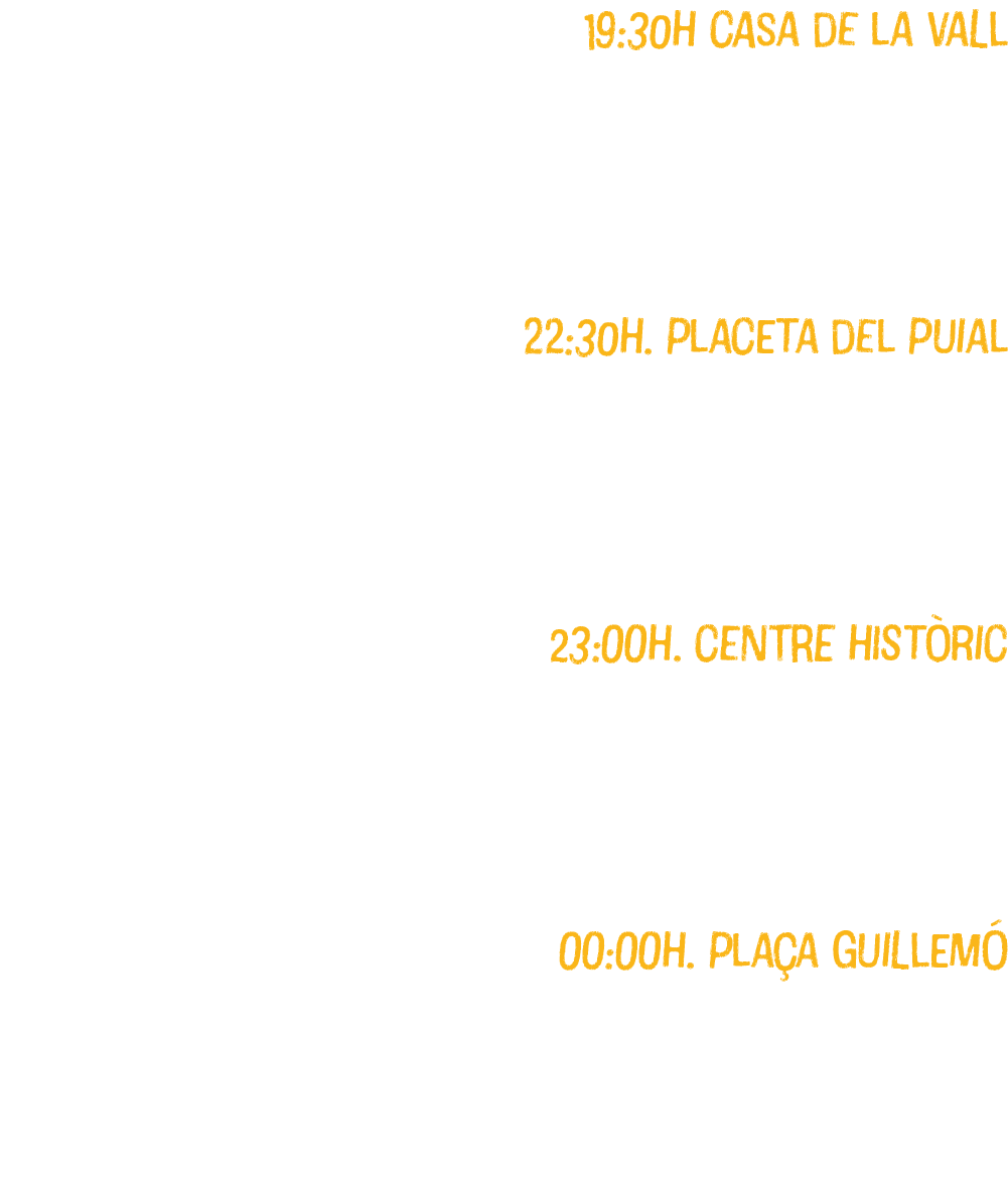 La festa no seria com la coneixem sense la participació de tots i cadascuna dels nostres col·laboradors. De les bruixes i el boc, passant per tots els musics i col·laboradors logístics. Tots ells fan possible que la festa sigui un èxit!